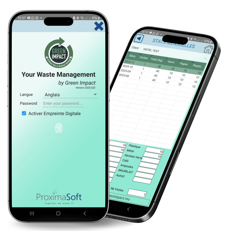 Notre application Green Impact offre aux entreprises un outil intelligent et intuitif pour suivre la gestion de leurs déchets en temps réel.