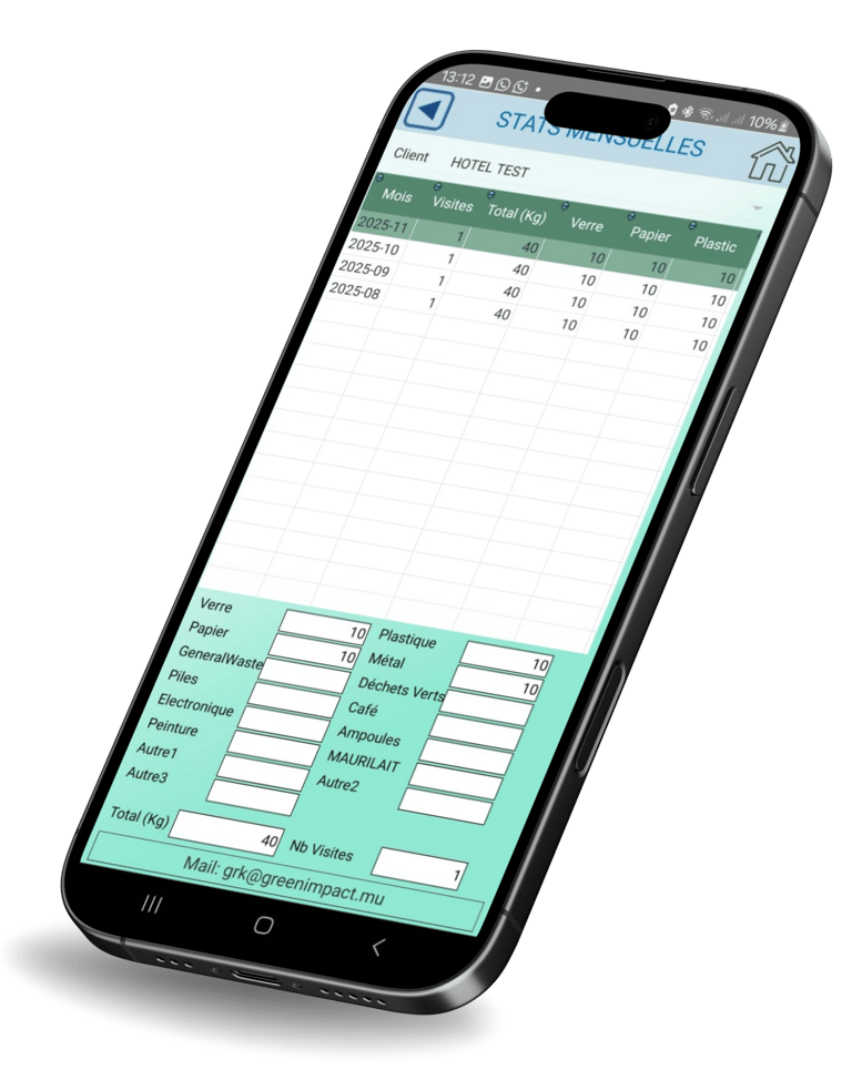 Green Impact prend en charge la collecte et la pesée des déchets, tout en fournissant une plateforme numérique intelligente permettant l’enregistrement et la transmission des données en temps réel.